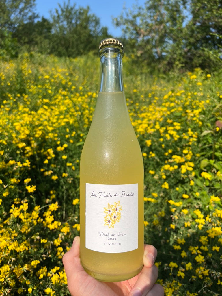3x piquette Dent-de-Lion 2024: eau, marc de raisin blanc, pomme, poire, prise de mousse au miel, 6% alc. 13$/bouteille