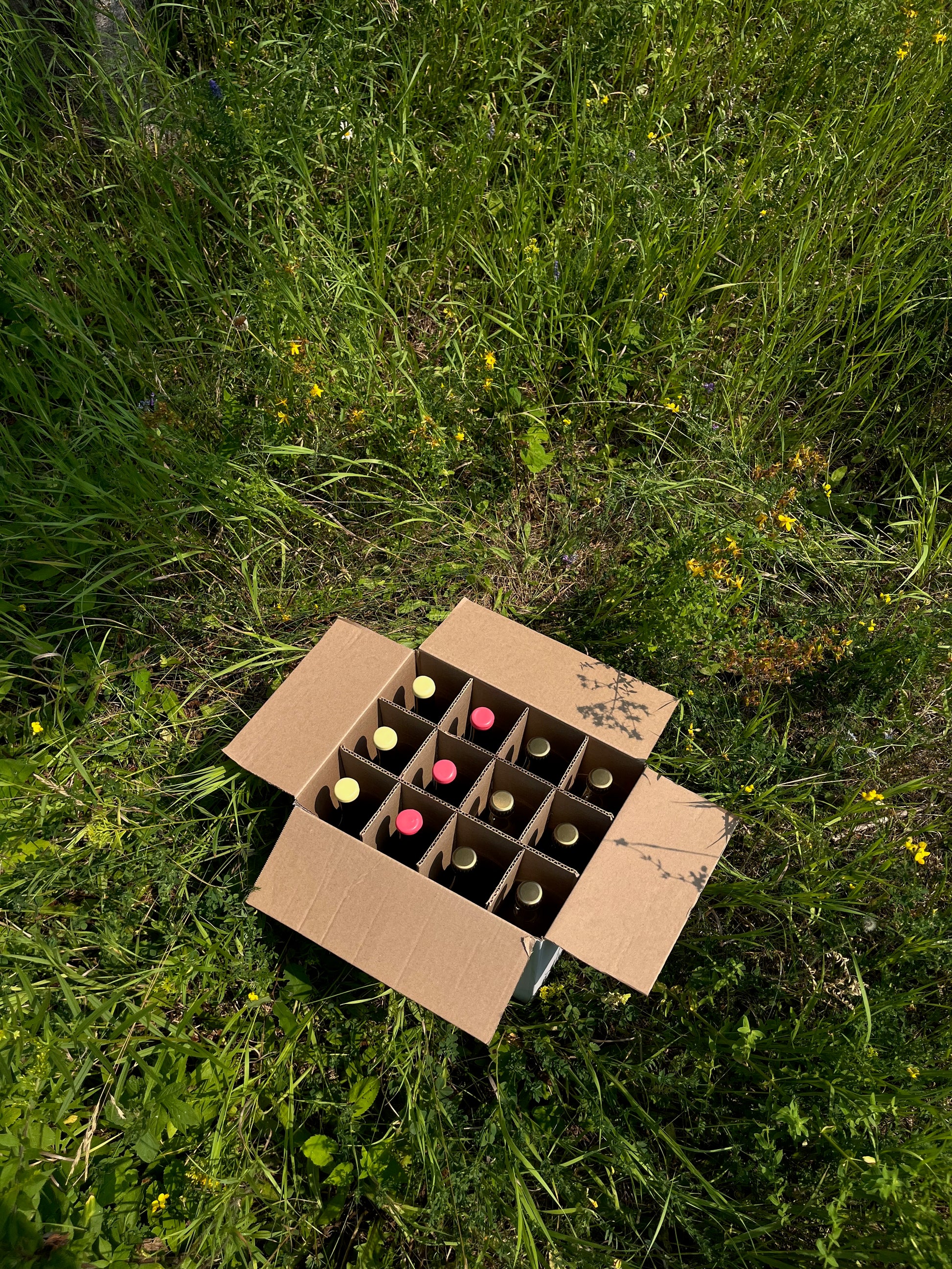 3x piquette Ancolie 2024: eau, marc de raisin rouge, pommette, aronie, prise de mousse au miel, 6% alc. 13$/bouteille